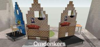 Decor ontwerp- Ik heb In opdracht van de Wresinski cultuurstichting twee decors ontworpen. Het decor voor de voorstelling Lazarus heb ik zo ontworpen dat het in coproductie gemaakt kon worden met de deelnemende acteurs, vrijwilligers en het productieteam. Voor de voorstelling ‘Omdenkers‘ heb ik het totaal ontwerp gemaakt en uitgevoerd met extra technische ondersteuning vanuit het productieteam. Alleen het decordoek is na ontwerp uitbesteed.