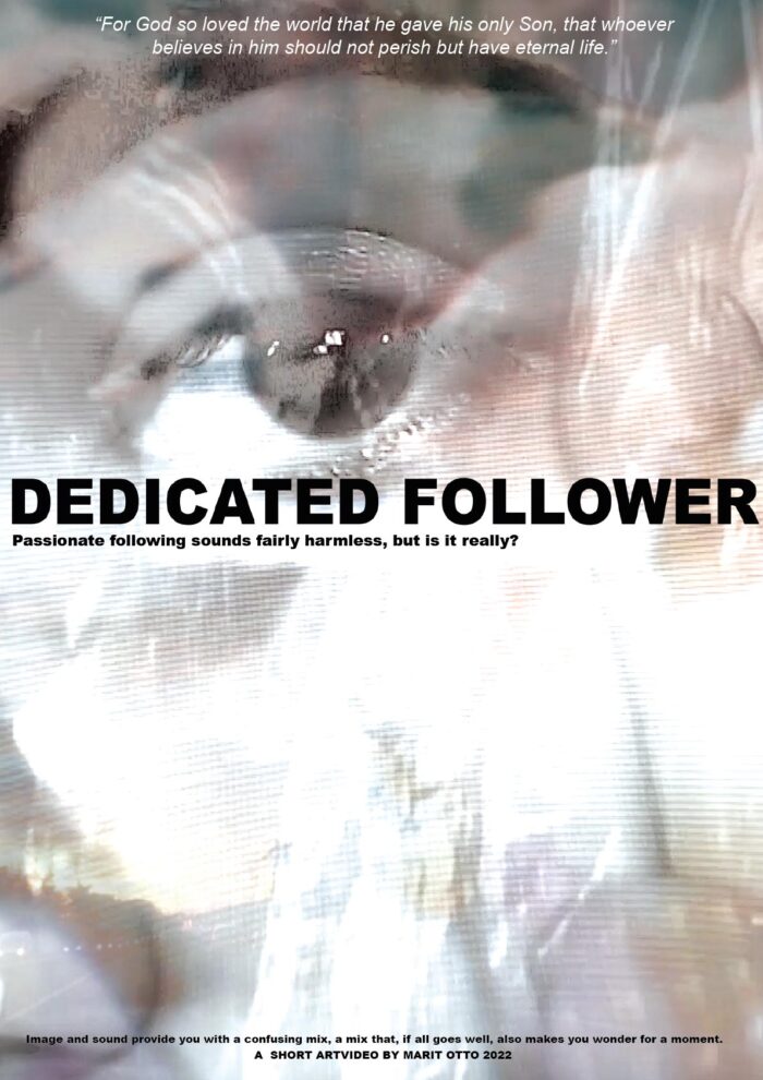 Mijn korte film, getiteld Dedicated Follower, bevat een aantal historische iconen, zowel goede als slechte: zoals Christus, Bhagwan, maar ook Mussolini, Hitler en Trump. We maken kennis met de aanbidders van onder andere Michael Jackson, Britney Spears en The Beatles, maar ook van hedendaagse influencers, en ik neem je mee door fragmenten uit verschillende cultfilms met dezelfde boodschap als mijn kunstwerk, zoals: 1984 van Orson Welles, Life Of Brian van Monty Python, Perfume van Tom Tykwer, de films Apocalypto en Passion Of The Christ, beide geregisseerd door Mel Gibson, Chaplin’s The Great Dictator en mijn eigen materiaal.